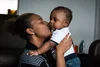 Tiyana Shaw cuddles her son, Kenneth Conley III, at her apartment in Mount Pleasant, Mich. on April 15, 2015. Shaw plays double roles as a senior at Central Michigan University and a mother to "K3"